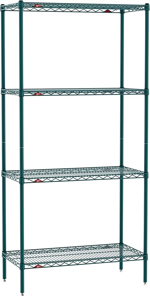 METRO Super Erecta Metroseal Green Epoxy Shelving Unit - Industrial Wire Shelving for Restaurants, Kitchens, Walk-in Coolers/Freezers with Microban - 4 Tier, 2000 lbs Capacity, 18” W x 36” L x 74” H