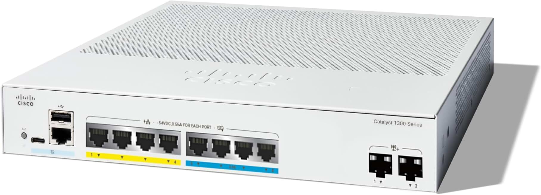 Cisco Catalyst 1300-8MGP-2X Managed Switch, 4 Port GE, 4 Port 2.5GE, PoE, 2x10GE SFP+, Limited Lifetime Protection (C1300-8MGP-2X)