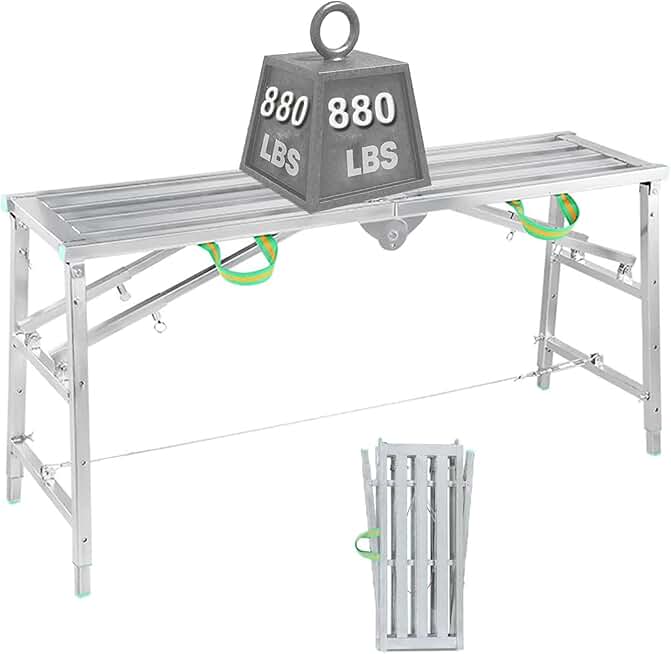 Multipurpose Steel Scaffold Ladder, Adjustable High Platform-880-Pound-Capacity, Portable Folding Work Platform for Washing Vehicles, Cleaning Windows, DIY, Maintenance Work,140cm