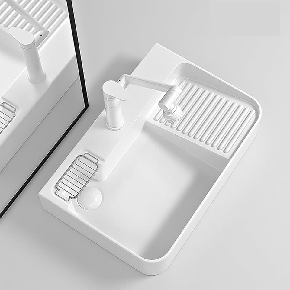 Bathroom Wash Basin Combo and Pop-Up Sink Drain,Basin White Porcelain Ceramic Lavatory ,Above Counter Porcelain Vessel Sink with Washboard and Pop Up ,Suitable for hotels, toilets, wash basins, bathro