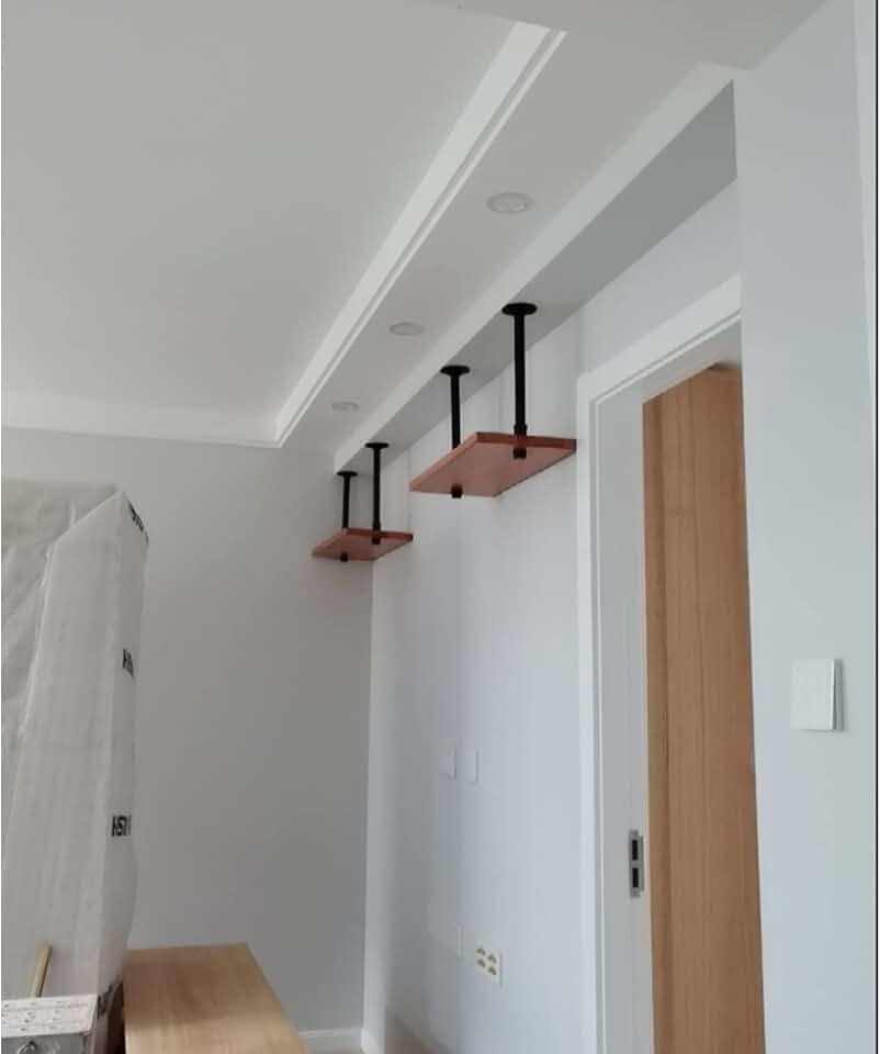 Wine Rack Ceiling Shelf Nordic Wrought Iron Pipe Hanging Wine Glass Rack, Loft Industrial Style Wine Rack, Multi-Layer Solid Wood Ceiling Plant Rack, Load-Bearing 50Kg Home Decorat