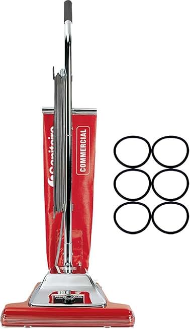 Sanitaire SC899F Commercial Shake Out Bag Wide Upright Vacuum Cleaner with 7 Amp Motor, 16" Cleaning Path w/6 Belts Included Bundle (SC899 + 6 Belts)