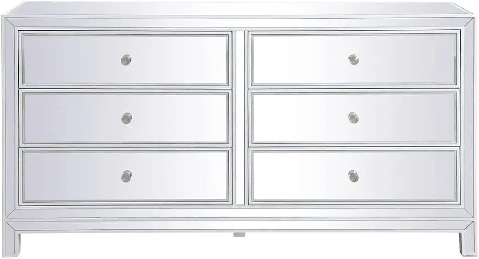 60 inch Mirrored six Drawer Cabinet in White