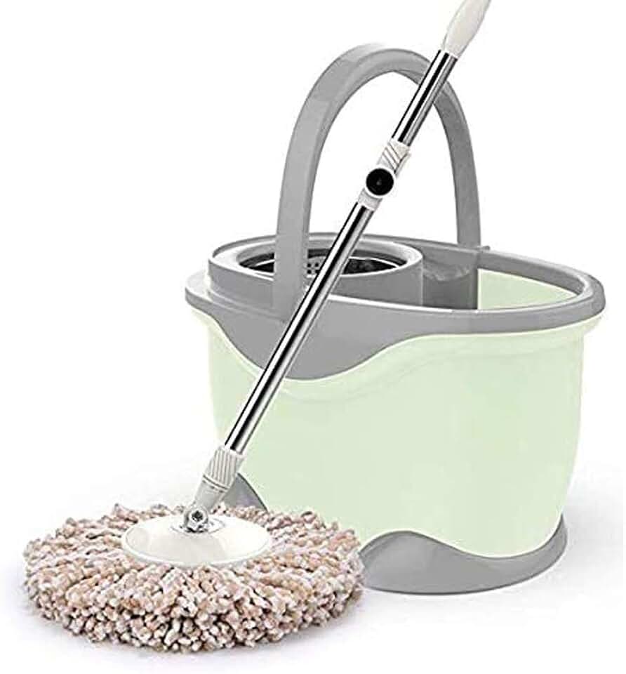 Mop Bucket Rotating Mop Household Automatic Hands Free Washing Mop Squeeze Water Mop Stainless Steel Bucket(Gray)