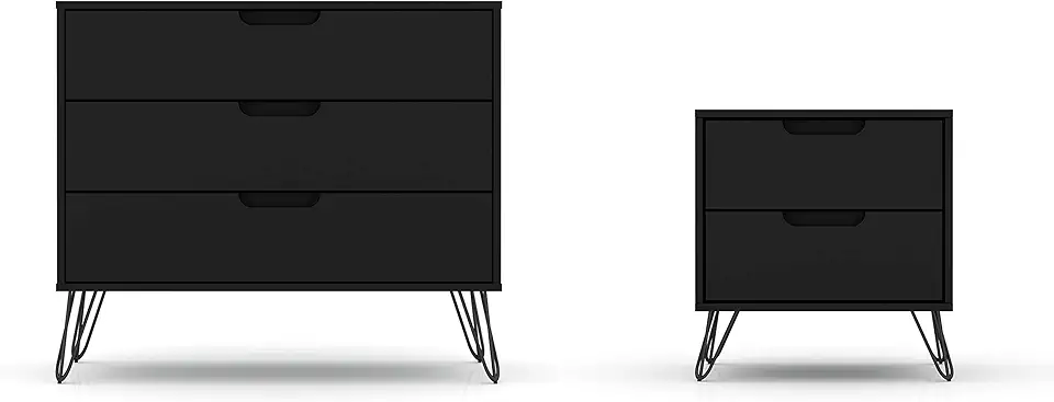 Manhattan Comfort Rockefeller Mid-Century Modern 3 Drawer Bedroom Dresser with Nightstand, Set of 2, Black
