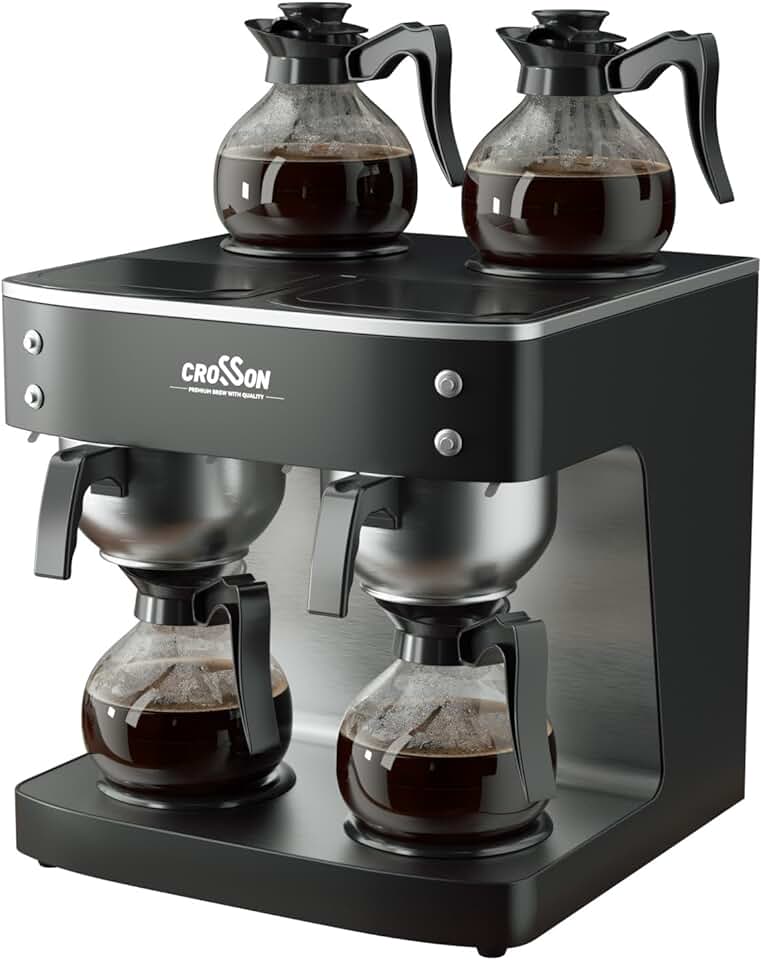 crosson 200 Cup/hour Commercial Drip Coffee Maker, 7.2L Pour Over Coffee Brewer with 4 Glass Decanter&Warmers and Easy Clean Fingerprint Free Housing and 304 Stainless Steel Funnel,