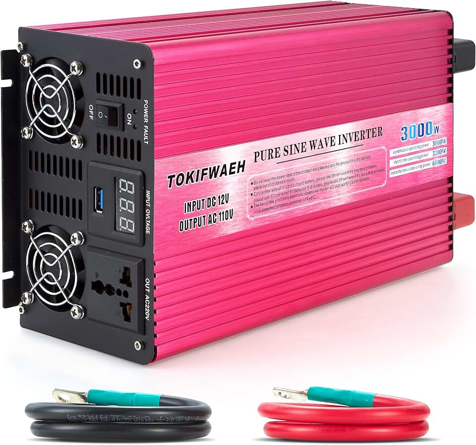 Pure Sine Wave Power Inverters 3000W 12V DC to AC 110V Converter Peak Power 6000W Car Inverter with LED Display, One AC Outlets, One USB Port,Four Smart Fans, Suitable for RV, Camping,Etc.