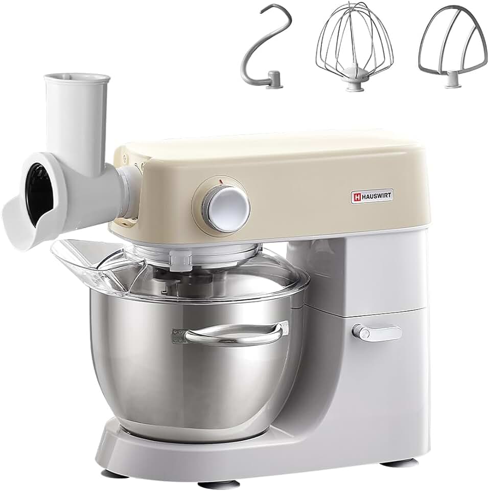 Hauswirt ivory white Electric Stand Mixer M5C, Slicer Shredder Attachment, Salad Machine with Vegetable Slicer, Salad Maker, Food Slicers Cheese Grater Attachments