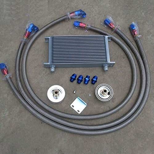 GOWE Universal 19 Row Aluminum 10 AN Racing Oil Cooler Kit +Oil Cooler Hose Adaptor+AN10 Stainless Steel Braided Hose