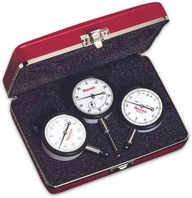 Starrett Dial Indicator Set with Jewel Bearing and Case - White Face, 025", .125", 1.00" Range, 0-5-0, 0-25-0, 0-100 Dial Reading, .001" Graduations - S253Z