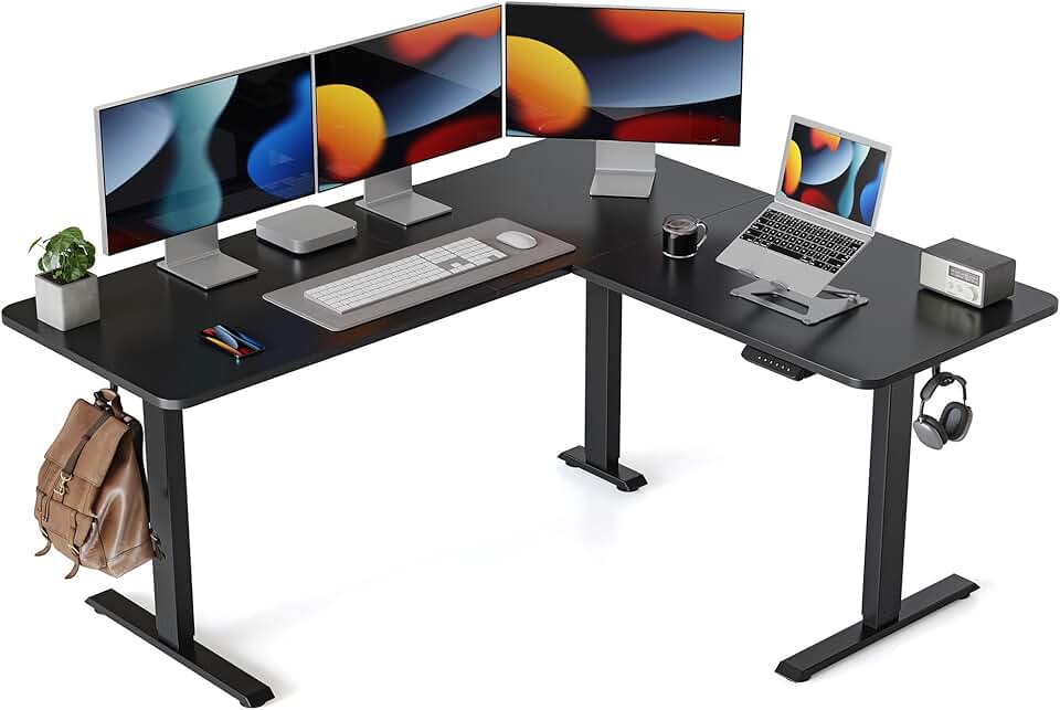 CubiCubi 63" L Shaped Electric Standing Desk, Height Adjustable Stand up Corner Desk, Sit Stand Home Office Desk with Splice Board, Black Top