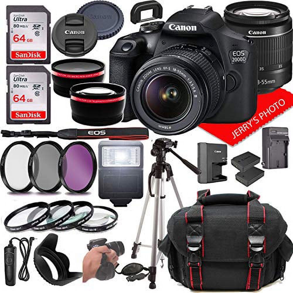 Canon EOS 2000D (Rebel T7) DSLR Camera w/Canon EF-S 18-55mm F/3.5-5.6 Zoom Lens + Case + 128GB Memory (28pc Bundle)