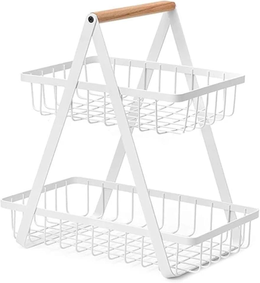 2-Tier Metal Fruit Basket Portable Kitchen Storage Countertop Shelf Rack for Fruits Vegetables Household(OneColor)