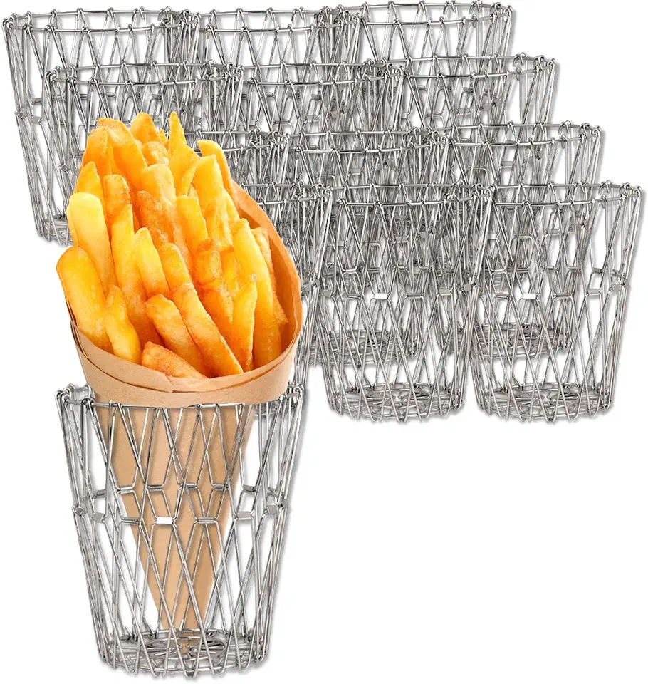 7600CV039 Metal Serving Baskets, Stainless Steel Wire Tabletop 12.5" Tall Large Open Centerpiece, Breadstick, Fry and Appetizer Server Holder, Set of 12