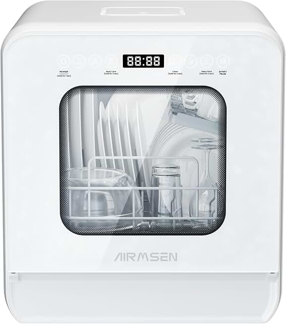 AIRMSEN 9 Programs Countertop Dishwasher with 5L Water Tank, Upgrade Air-Dry Function, Portable Dishwasher with 4 Place Settings, 2-Level Rack, 194℉ High-Temp& 24H Delay Start