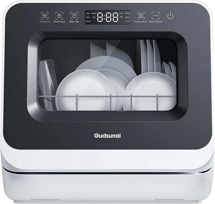 Countertop Dishwasher, Portable Dish Washer, 5 Washing Modes, 360° Cleaning, Energy Efficient, Low Noise, Perfect for Small Families, Compact Size for RVs & Kitchens