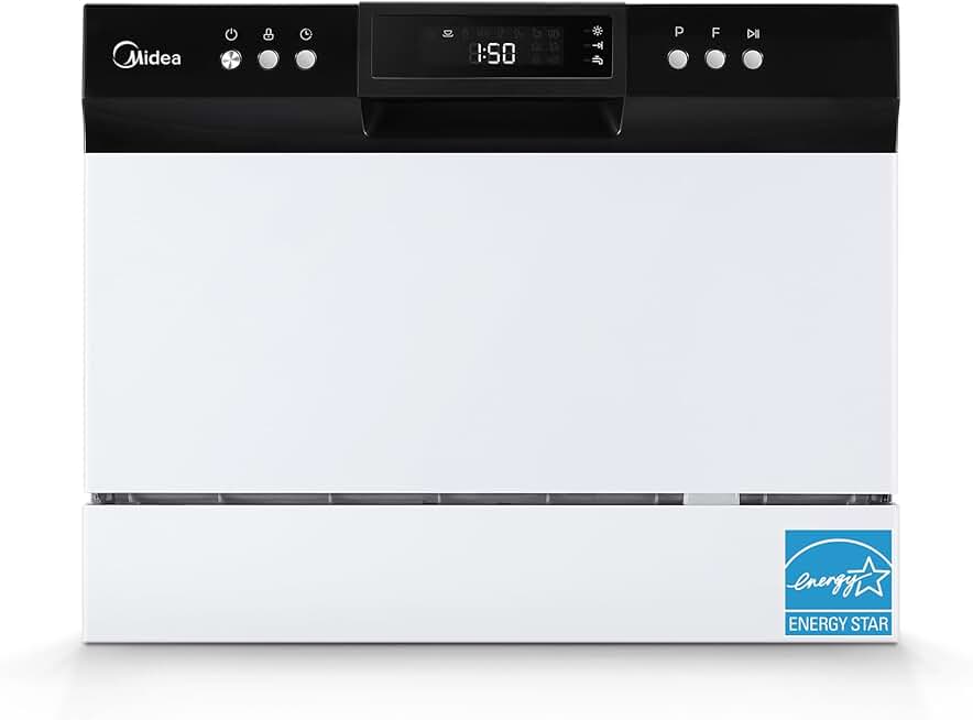 Midea MDC22P1AWW Energy Star Portable Dishwasher, 6 Place Settings & 8 Washing Programs, Speed, Baby-Care, ECO& Glass, Dish Washer for Dorm, RV& Apartment, White