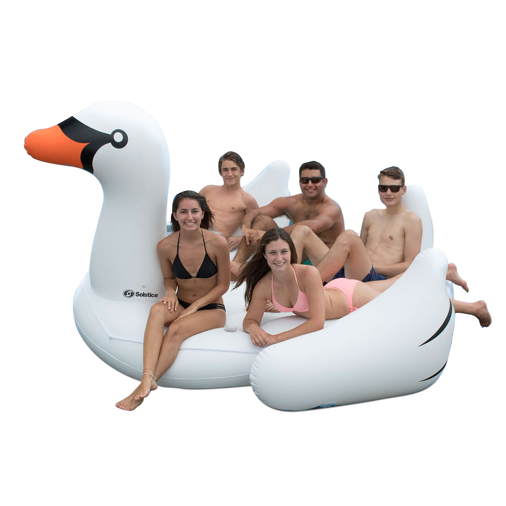 SWIMLINE ORIGINAL 19671 Double Inflatable Swan Pool Float Floatie Ride-On Lounge W/ Stable Legs Wings Large Rideable Blow Up Summer Beach Swimming Party Lounge Big Raft Tube Decoration Toy Kids Adults