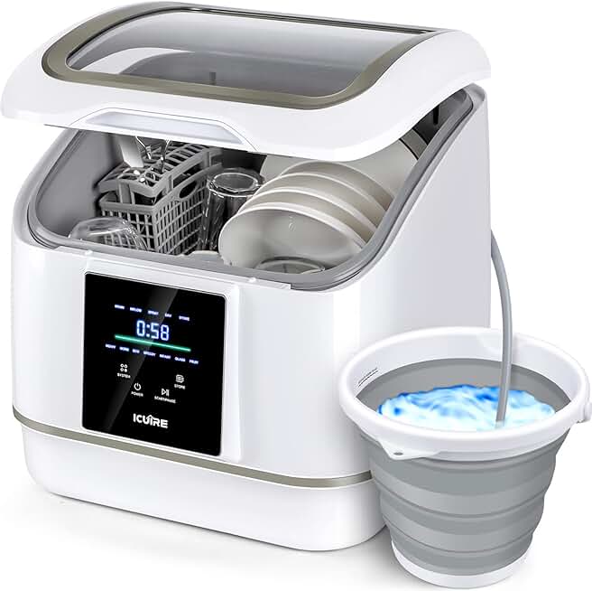 ICUIRE Portable Dishwasher Countertop, No Hookup Needed, 7 Washing Programs, 360°Spray, Hot Air-Dry Function, Fruit & Vegetable Soaking, Baby-Care, Mini Dishwasher for Apartments, Dorms and RVs