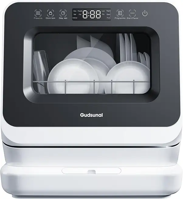 ecozy Portable Dishwasher Countertop, Mini Dishwasher with a Built-in 5L Water Tank, No Hookup Needed, 6 Washing Programs, Extra Air Drying Function for Apartments, Camping and RV