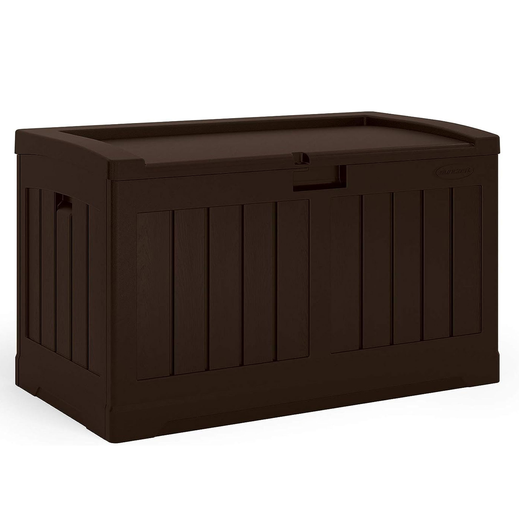 Suncast 50 Gallon Medium Resin Outdoor Storage Deck Box with Seat, Java