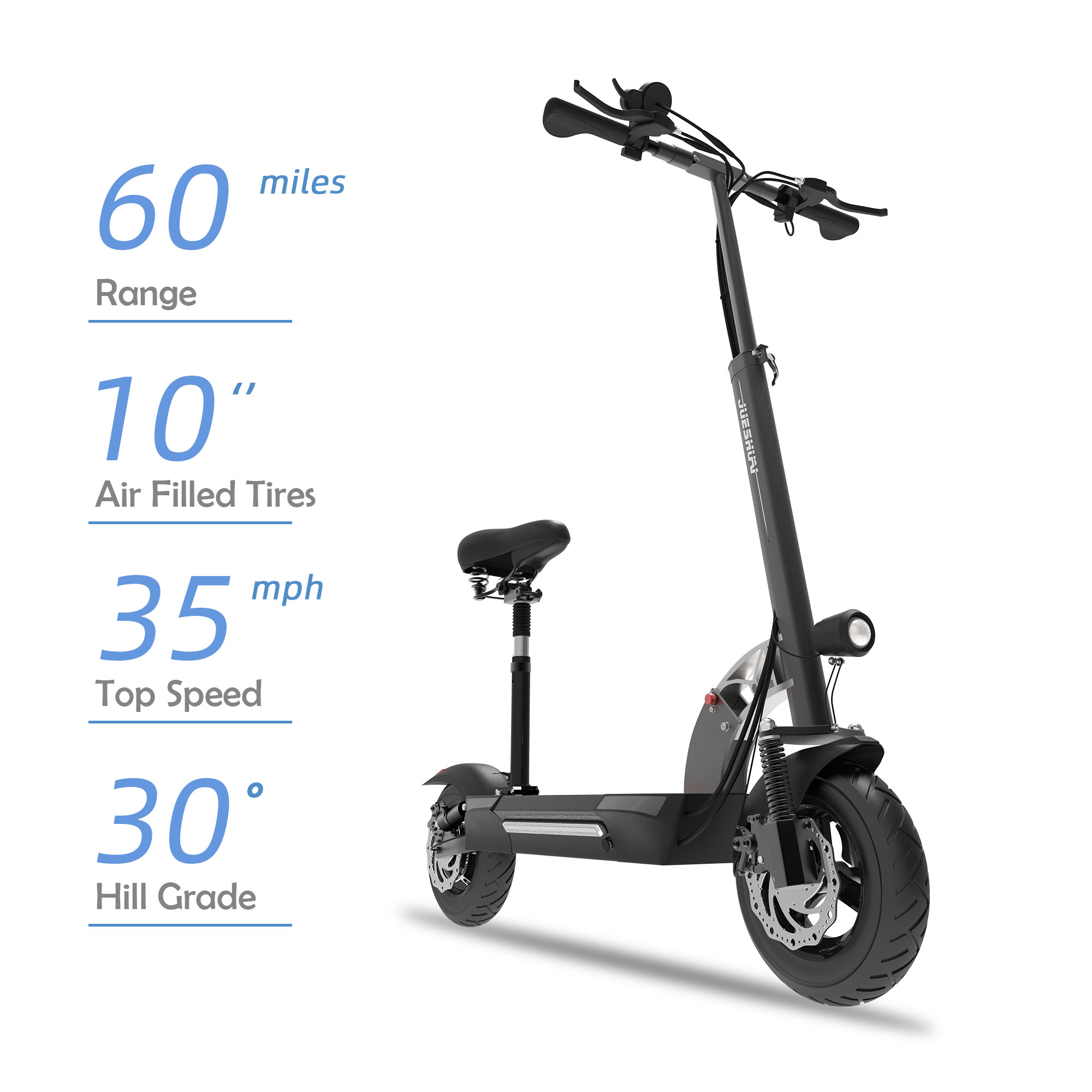 JUESHI Electric Scooter with Seat, Long Range 60 Miles, 1200W Motor, Top Speed up to 35 MPH