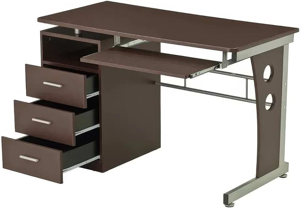 Elegant Chocolate Computer Desk with Ample Storage and Sturdy Design