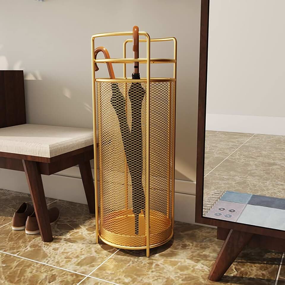 Metal Umbrella Holder, Umbrella Stand, with Fixed Drain Pan and 4 Hooks, Metal Mesh, Used for Storage of Umbrellas in and Office Decoration Racks