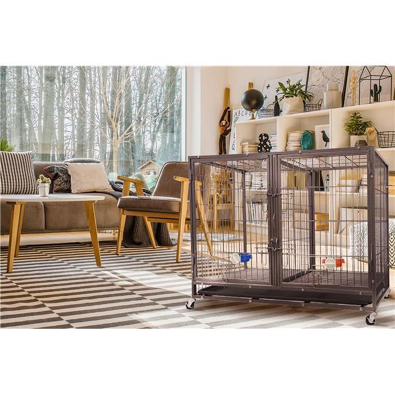 44 in. Heavy Duty Stackable Cat & Dog Crate with Divider & Water Bowls
