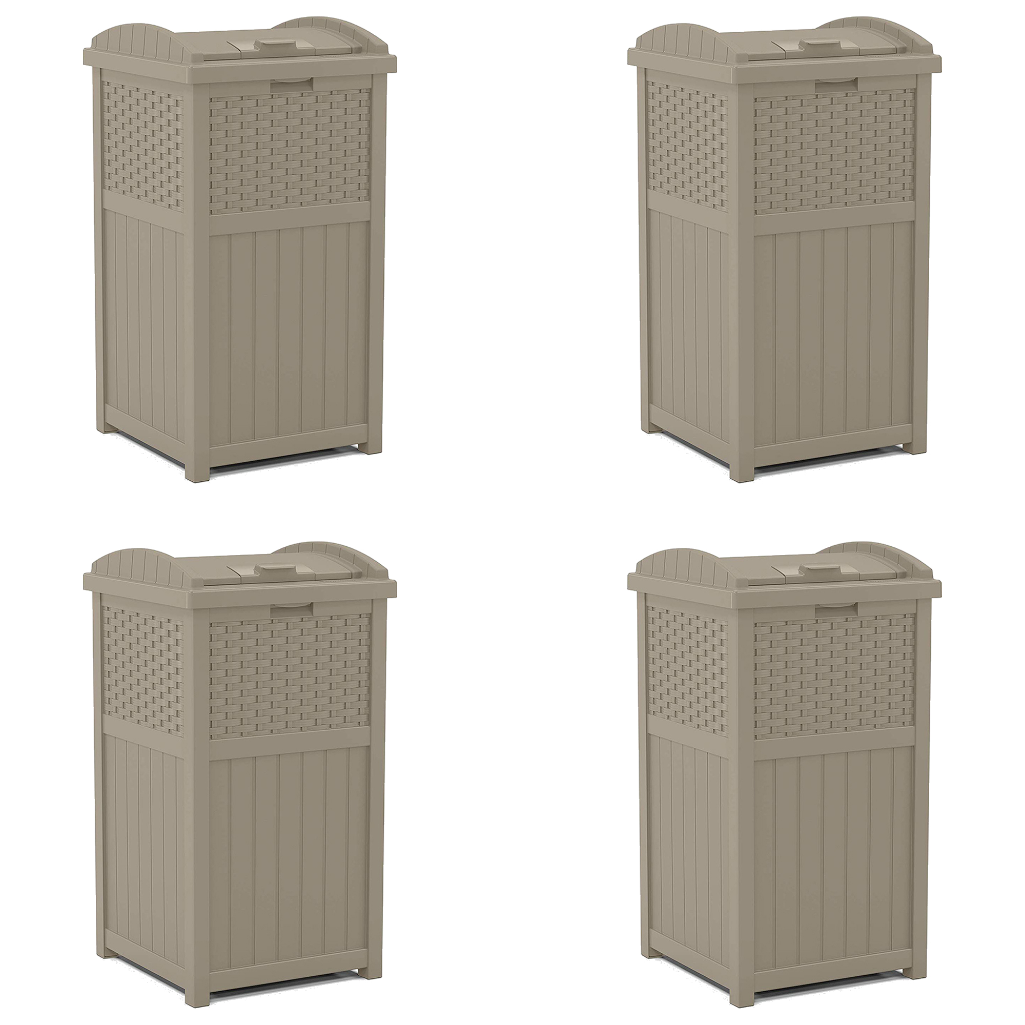 Suncast Wicker Plastic Hideaway Trash Can w/Lid, Dark Taupe (4 Pack)