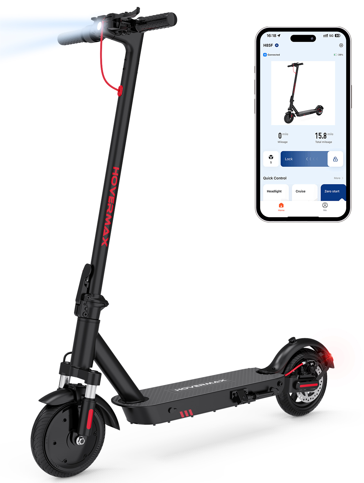 HOVERMAX Electric Scooter 350W Motor Up to 18.6 MPH & 19 Miles, 8.5'' Solid Tires Adults Electric Scooter with APP Control, Foldable and Commute