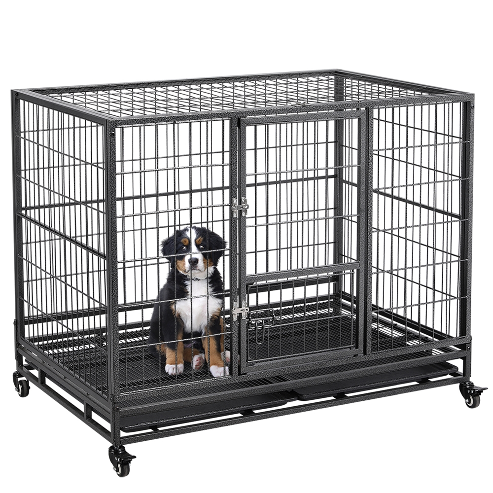 Easyfashion 43 inch Heavy Duty Metal Rolling Dog Cage Kennel,Black