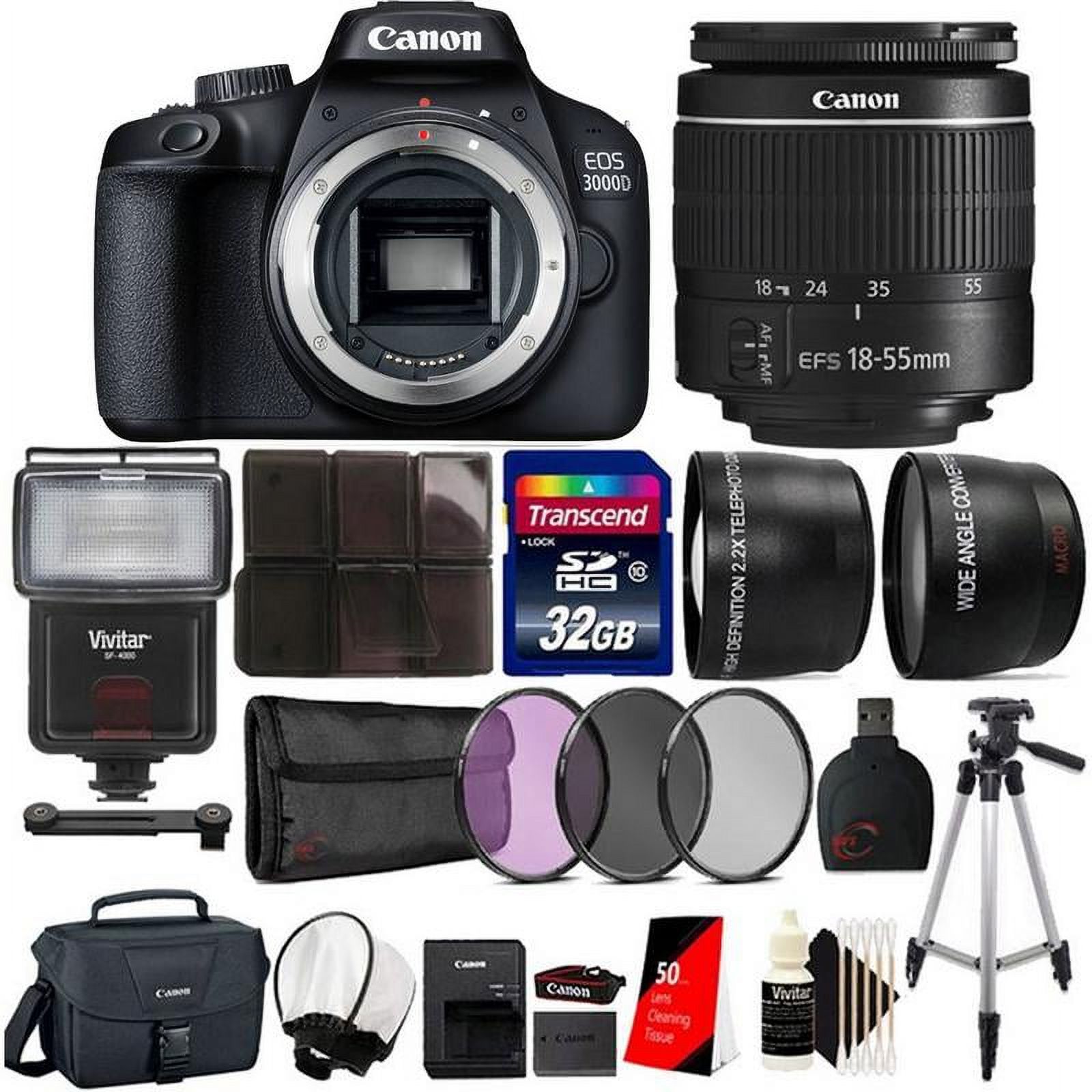 Canon EOS 3000D SLR Camera w/ 18-55mm Lens and 32GB Accessory Kit