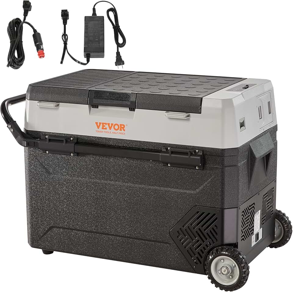 VEVOR Car Refrigerator, 12 Volt Car Refrigerator Fridge, 56 QT/53 L Dual Zone Portable Freezer, -4℉-50℉ Adjustable Range, 12/24V DC and 100-240V AC Compressor Cooler for Outdoor, Camping, Travel, RV