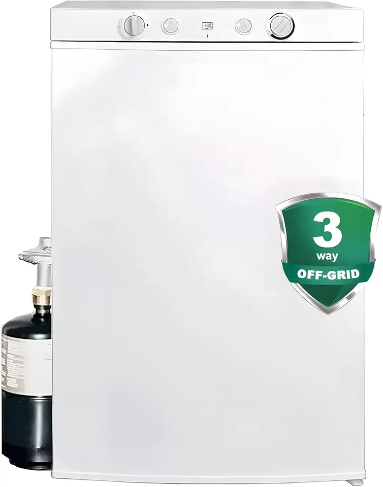 SMETA Propane Refrigerator RV 3 way Off Grid Camper Fridge Outdoor Refrigerator for Patio 12V/110V/Gas LPG, No Noise, Solar Fridge for RV Garage, Single Door, 3.5 Cu.Ft, White
