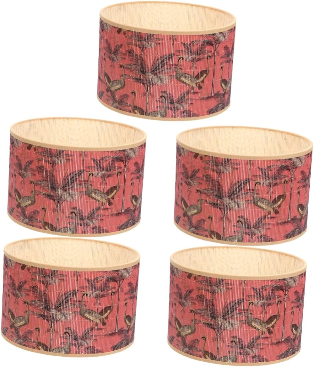 OSALADI 5pcs Bamboo Lampshade Retro Drum Lamp Shade Light Bulb Cover Wall Lamp Shade Pendant Light Shade Round Drum Lamp Shade Shades Barrel Lamp Shade E14 Bamboo Weaving Chandelier Shade