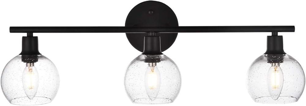 3-Lights Globe Shade Bathroom Vanity Light, 24.4” Width Seeded Glass Bathroom Lighting Fixtures Over Mirror Matte Black Finish for Cabinet Powder Room