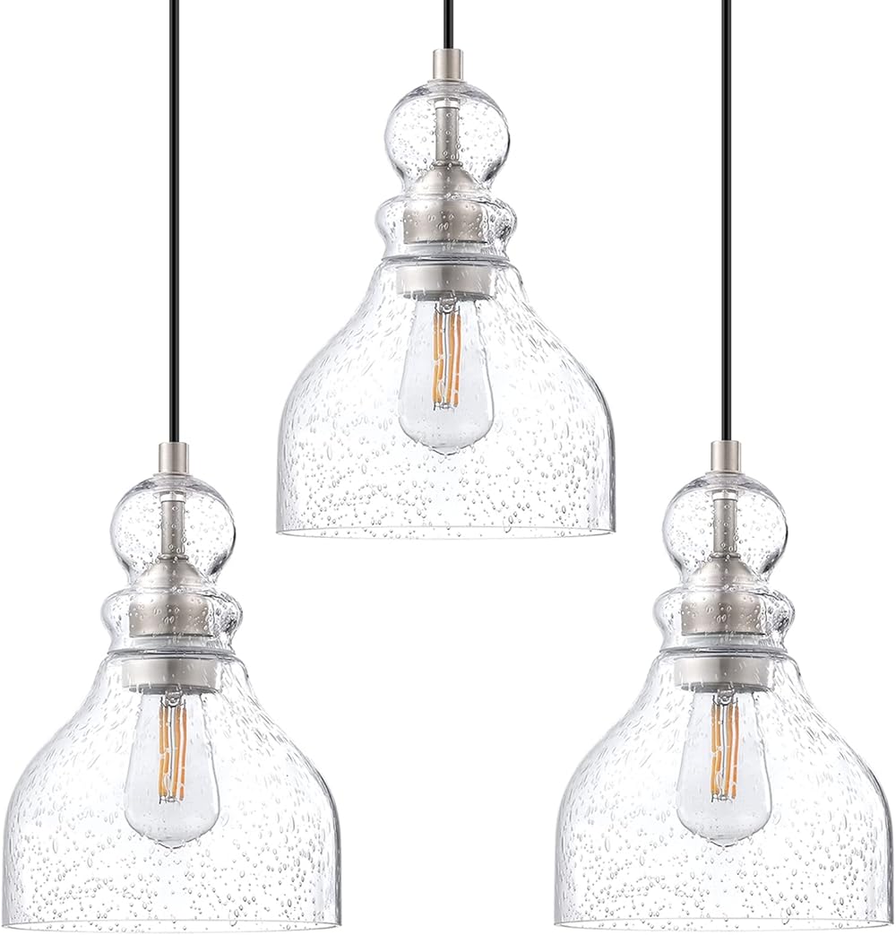 3 Pack 1 Light Pendant Ceiling Light Kitchen Island 6.5" Hand Blown Seeded Glass Brushed Nickel Finish Modern Industrial Farmhouse Lighting for Bedroom Sink Restaurant bar Corridor