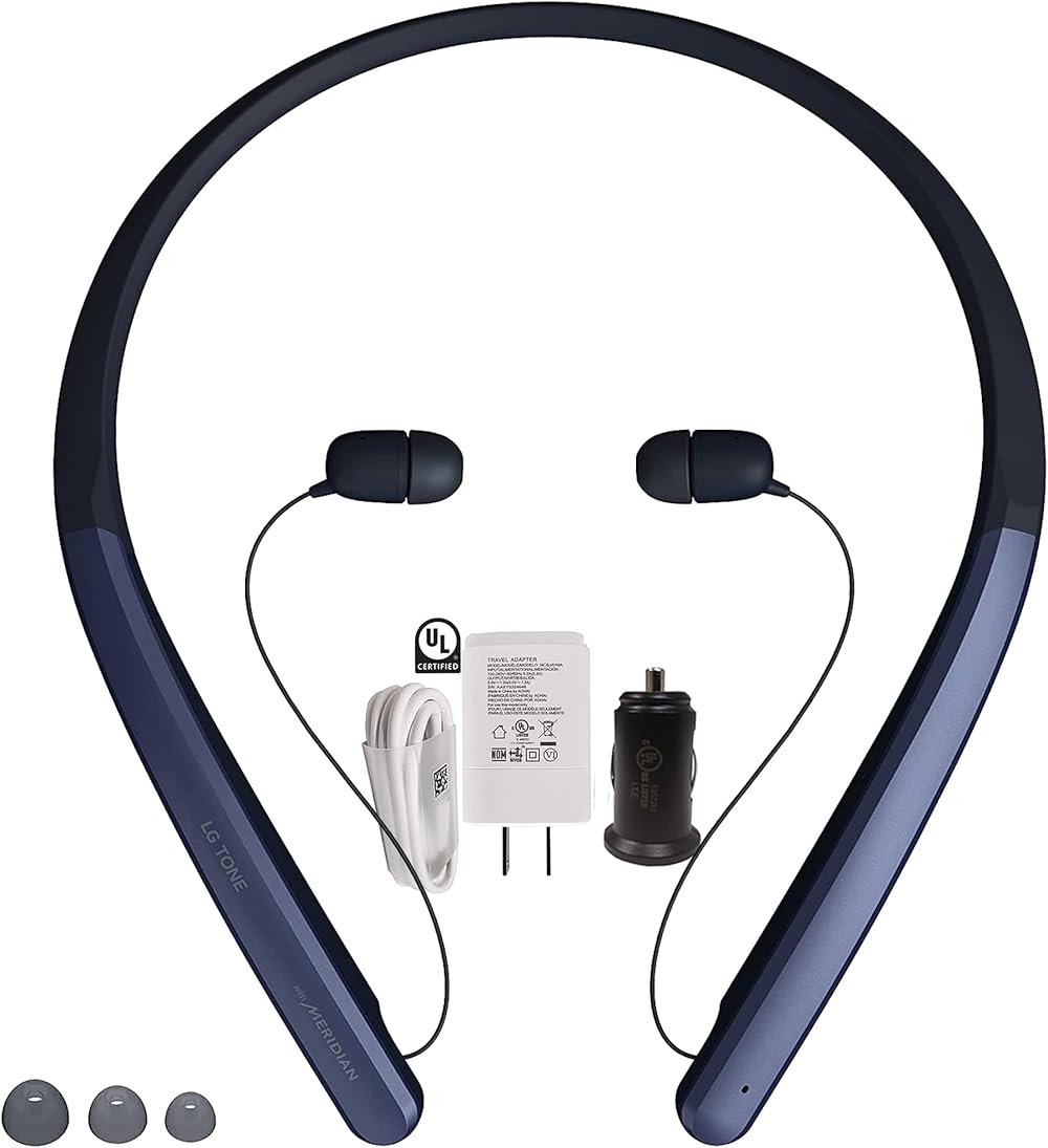 LG TONE Flex Wireless Bluetooth Stereo Neckband Earbuds HBS-XL7-32-Bit Hi-Fi DAC, Meridian Audio,Google assistant (Wall & Car Charger- NAVY BLUE)