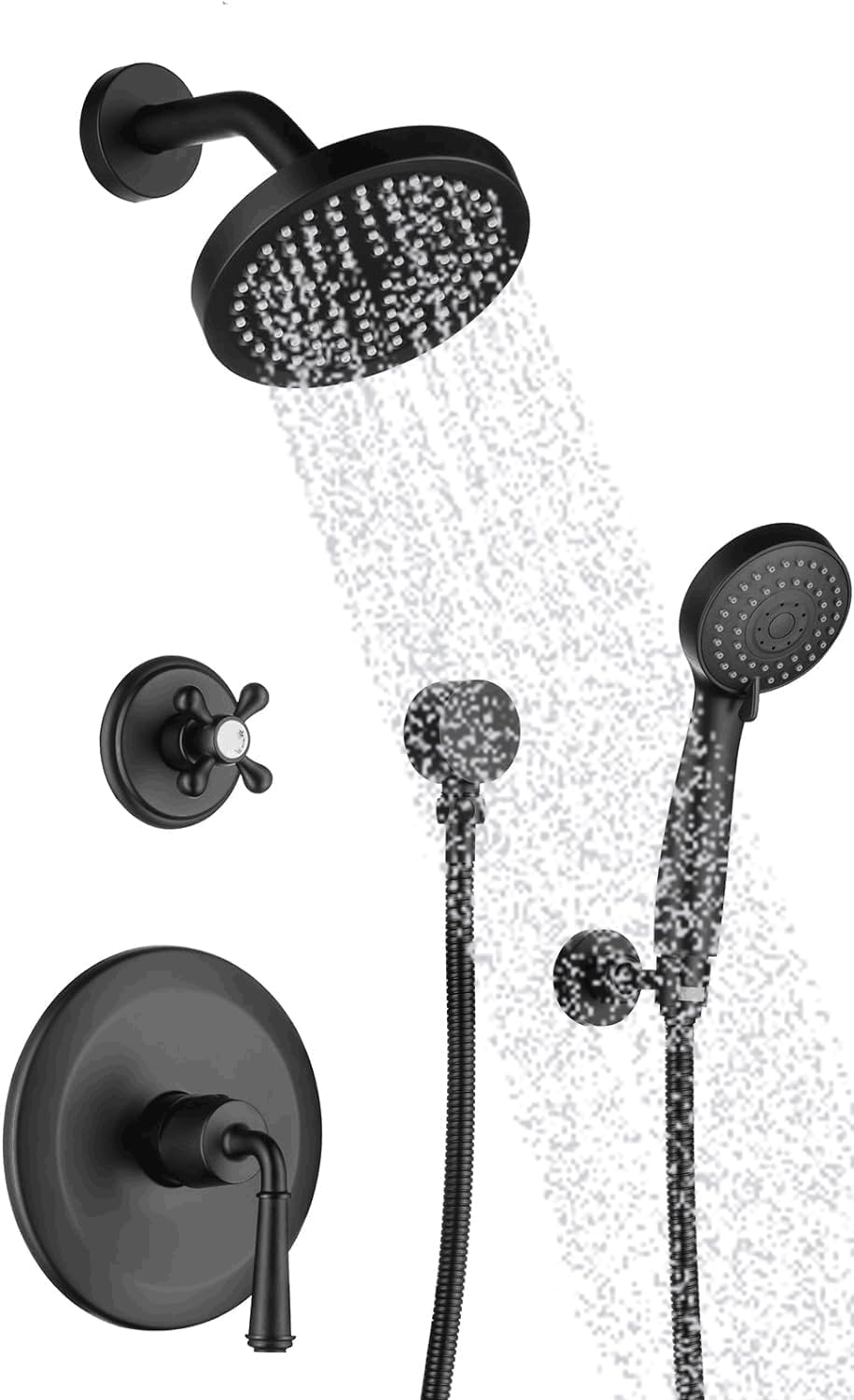 Aolemi Shower Tub Spout Set Matte Black Shower System Dual 2-in-1 Faucet with 8-Settting Rainfall Showerhead and Handheld Spray 3 Way Diverter Pressure Balance Rough-in Valve Shower Trim Kit