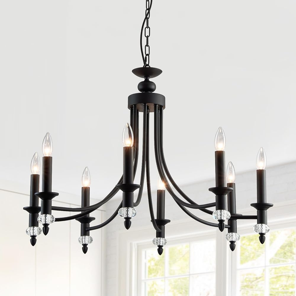 8-Light Black Farmhouse Candle Chandeliers Metal Modern Hanging Pendant Lighting Fixture Industrial Ceiling Light for Living Room Kitchen Dining Room Bedroom Foyer