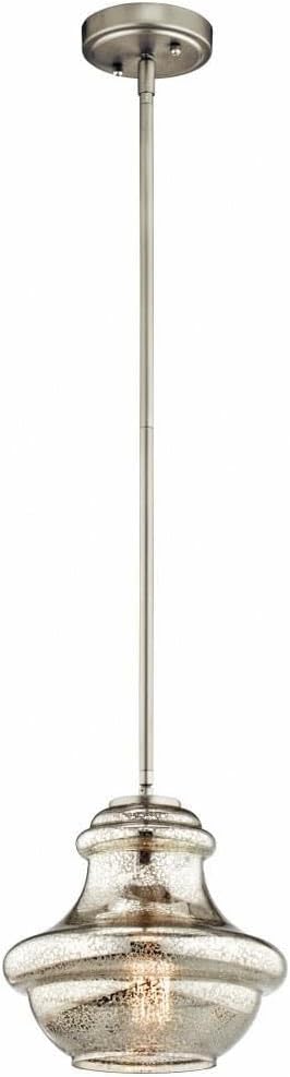 Kichler Everly 9.25" 1 Light Mini Schoolhouse Pendant Mercury Glass Brushed Nickel
