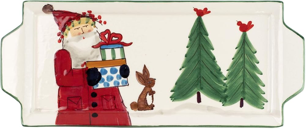 Vietri Old St. Nick Handled Rectangular Platter, Earthenware Steak Salad Dessert Snack Serving Plate