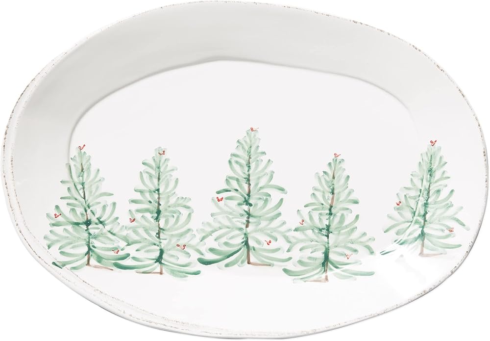 Vietri Lastra Holiday Oval Platter, Stoneware Serving Plate for Steak Salad Dessert Seafood & Snack