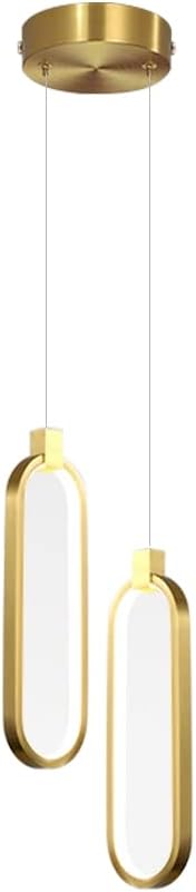 Minimalist Pendant lights for Bedside Kitchen Island, Brass Double-headed Hanging Lamp with Remote Dimmable, Nordic Oval Lighting Living Room Bathroom Single Light Fixture (Double head)