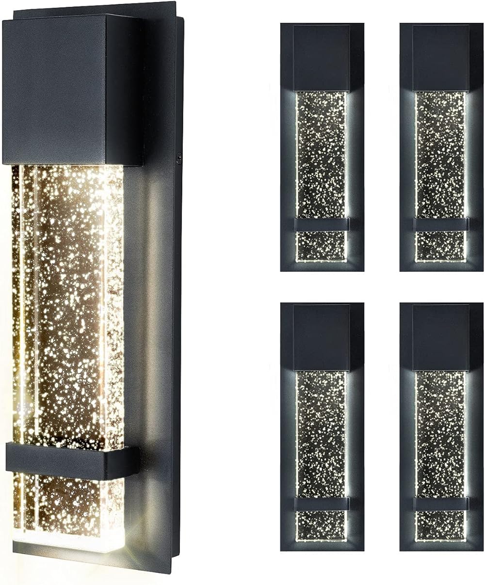 ASD LED 13 Inch Bubble Glass Wall Light Fixture | 12W 500LM 3000K-5000K 120V | 3CCT, Waterproof, Dimmable, ETL Listed | Exterior Flush Mount Sconce, Outdoor-Indoor Lighting | Black, 4 Pack