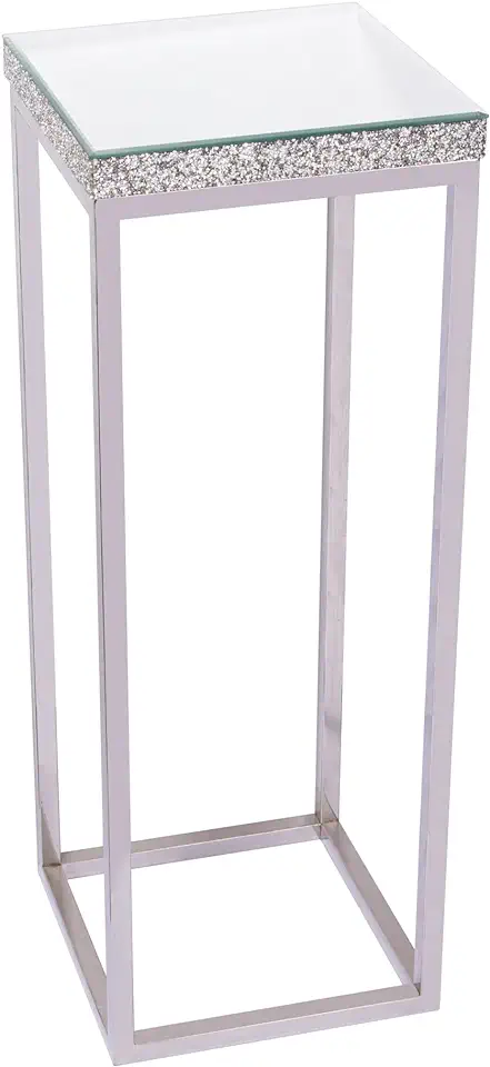 Tall Crush Diamond Mirrored Pedestal Stand Accent Table – Side Table – End Table – Drink Table