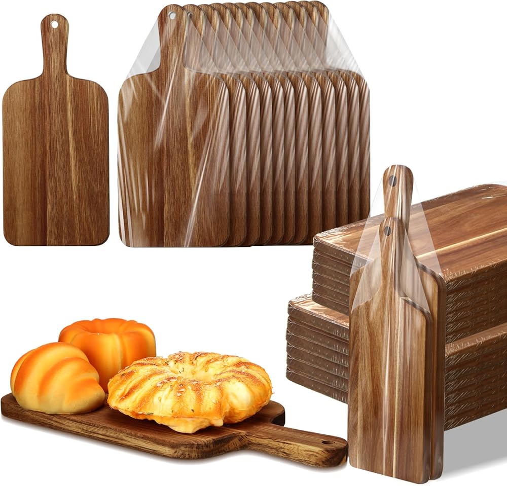24 Pcs Acacia Wood Cutting Board 17 x 7 Inch and 12 x 6 Inch Wood Serving Board Set with Handle Laser Engraving Serving Board for Vegetables Meat Pizza Cheese Bread Housewarming Gift