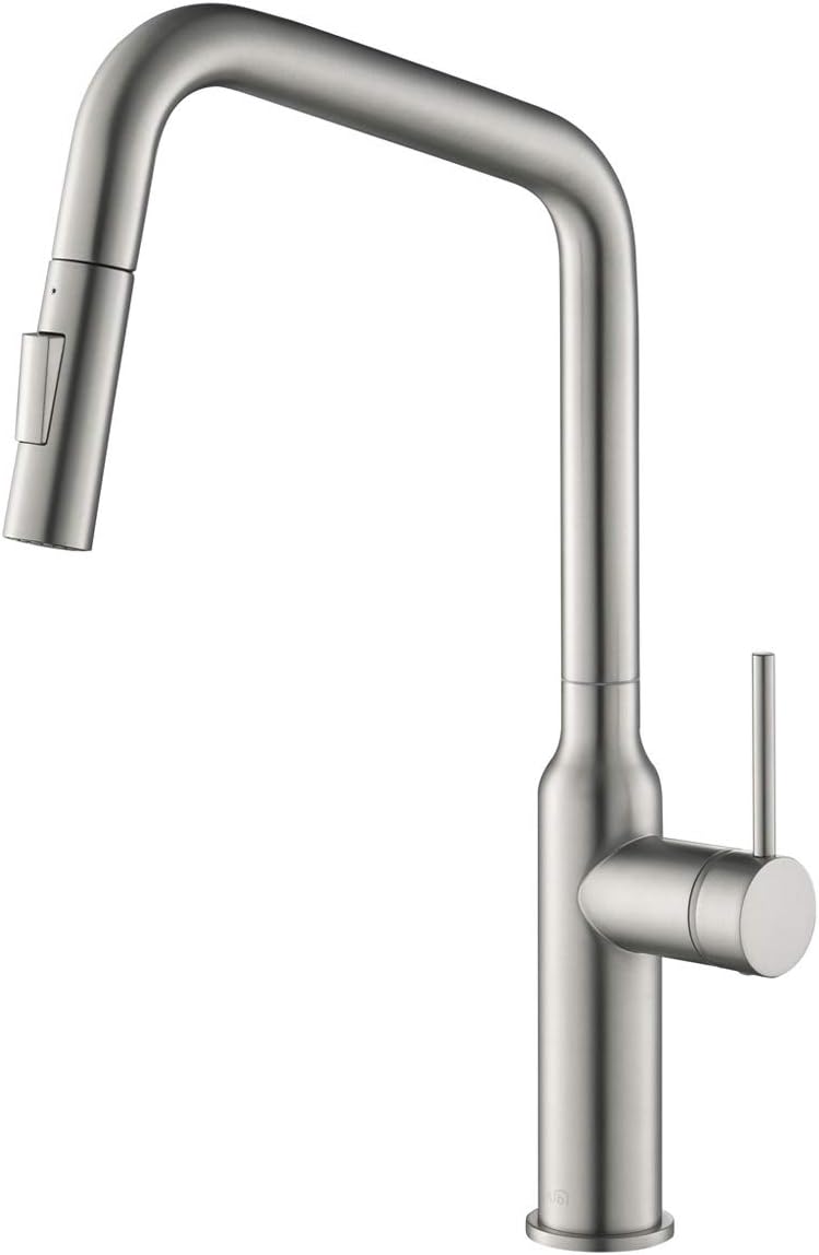 KIBI Macon Single Handle Pull Down Faucet for Kitchen Sink | Solid Brass High Arc Faucet Spout | 360 Degree Swivel Kitchen Faucet with Pull Down Sprayer (Brushed Nickel) (KKF2007)