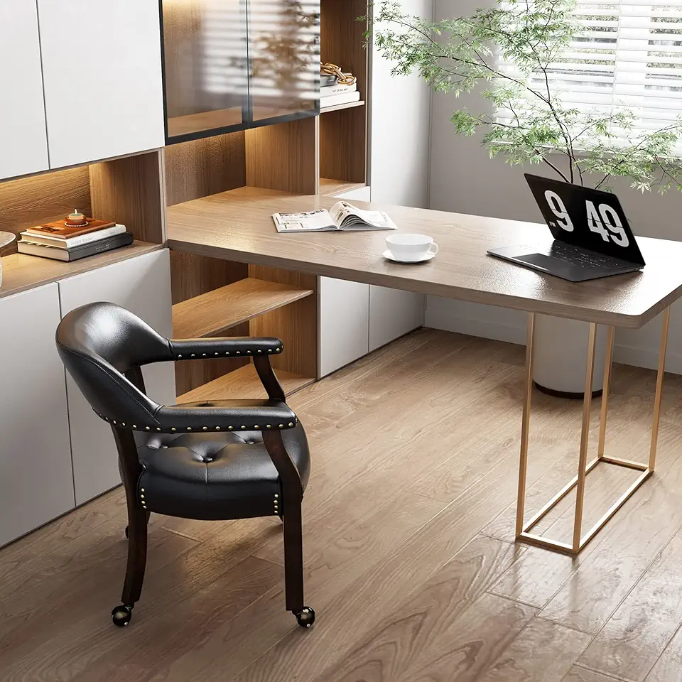 Big Dining Roller Chair with Arms, Accent Kitchen Side Chairs with Wheels, Wood Game Poker Chairs, Boss Captains Rolling Chair, 26“Dx25.2 Wx31.5“H, Espresso&Black PU, 318BK